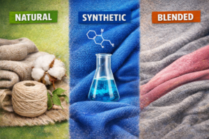 Fabrics are an equally significant part of our life as they are involved in almost every type of material we are surrounded by on a daily basis, including clothing, bedding, and many others. Choosing the appropriate fabric can directly impact your comfort level, how long the product will last, and may even affect how you feel, emotionally-speaking. To ensure that you have selected the appropriate fabric type for your purpose, it is essential to familiarize yourself with the three main fabric types: Natural, Synthetic and Blended. Each type has its own unique characteristics/qualities, advantages/disadvantages, and are used best for different purposes.